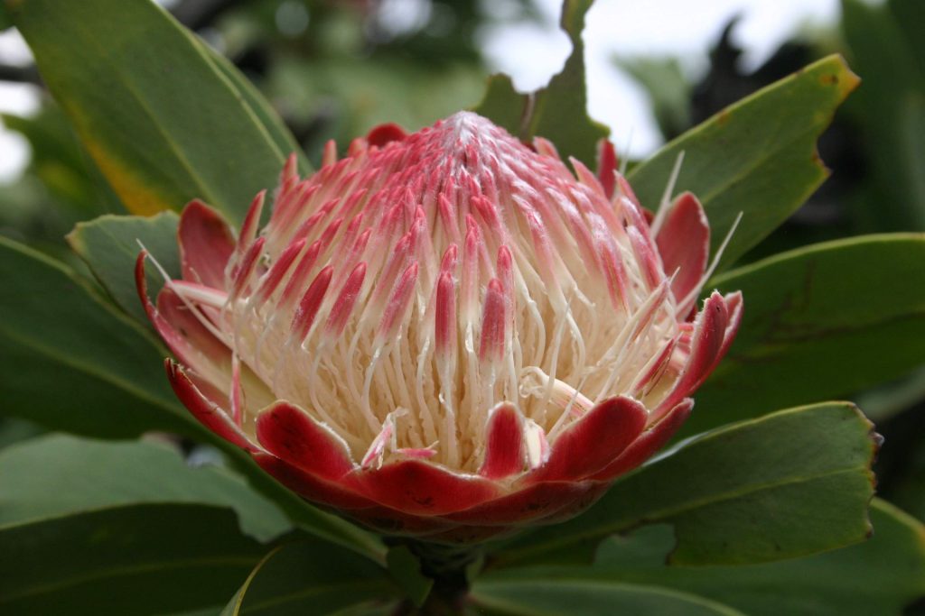 The initial segment of the trail challenges hikers with rocky outcrops, leading into a valley adorned with the trail's namesake, the Sugarbush (Protea caffra). This small yet striking shrub is a spectacle to behold, especially when its pinkish-red flowers bloom between October and December, painting the valley in vibrant hues for up to eight weeks. The Sugarbush is emblematic of the region's unique flora, thriving on rocky ridges and within wooded grassland.